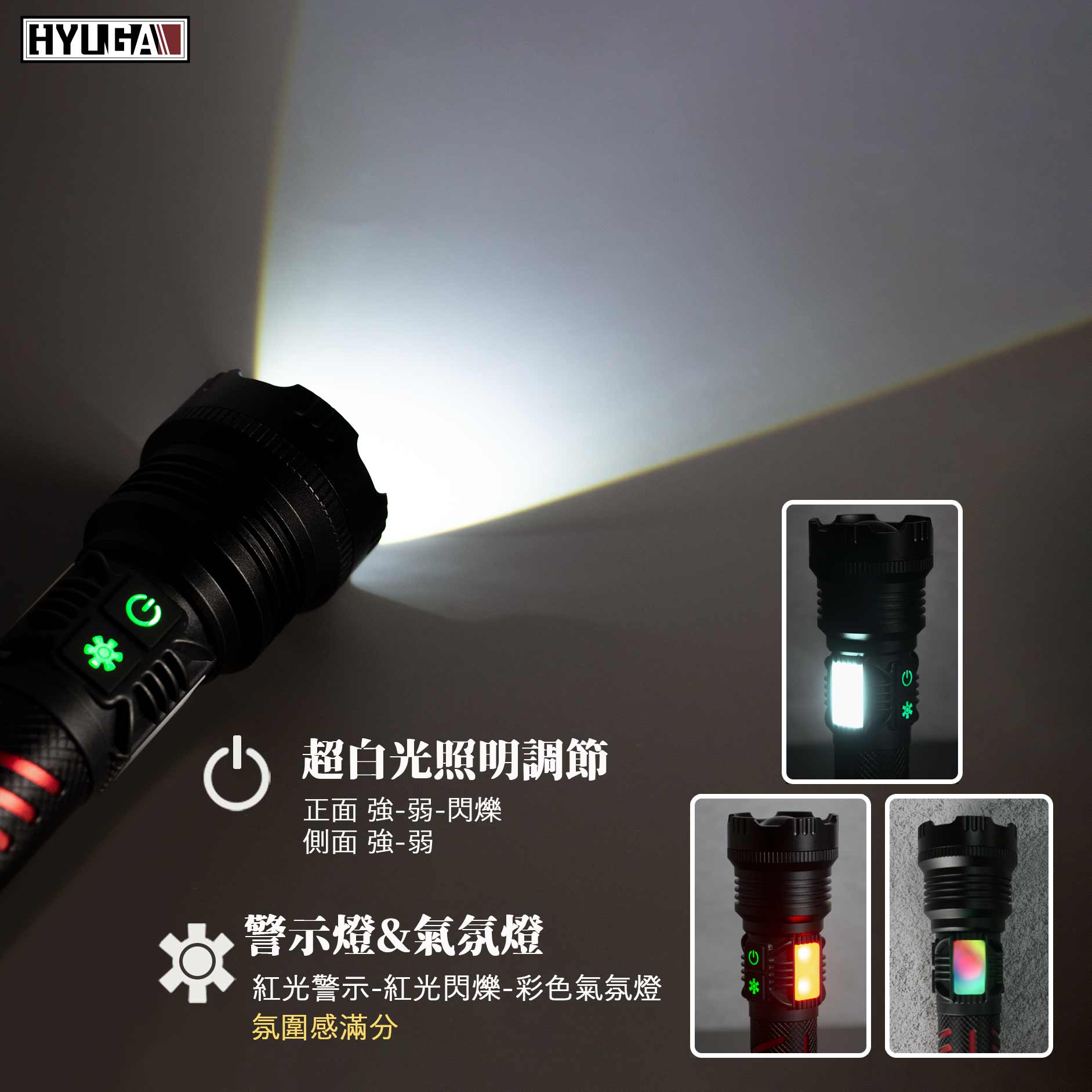 - 功能:白光强一弱,暖白光强一弱,红光,強-閃,白光+黄光全亮(長按2秒)